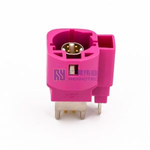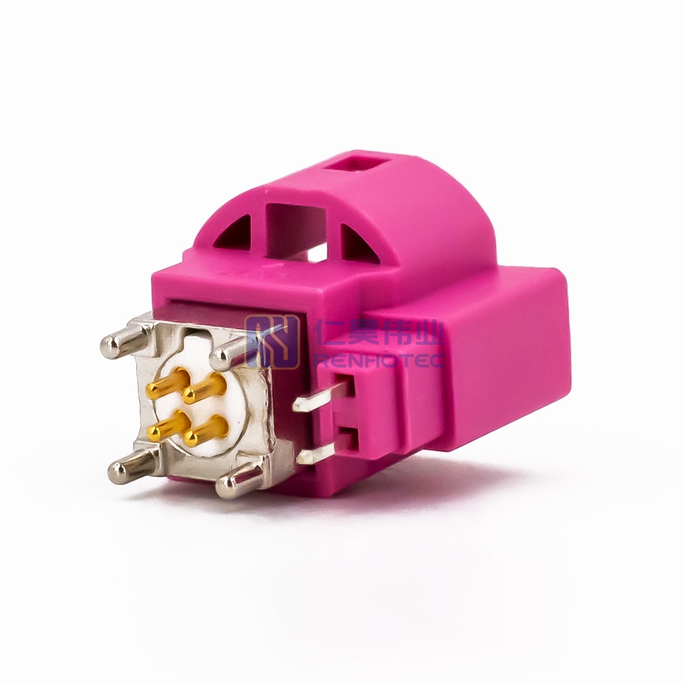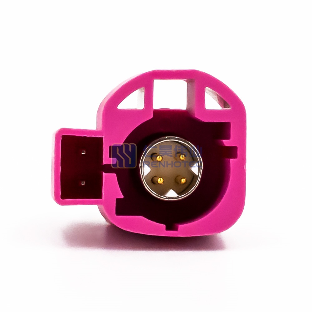 - Right angle 4+2 pin HSD connector plug with panel mount, H code, for reliable and high-speed data transmission in automotive and industrial systems